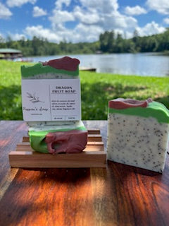 Experience the tropical fruity bliss of our Pink Dragon fruit Soap. Infused with poppy seeds this soap provides mild exfoliation helping to remove dead cells for a more radiant skin.